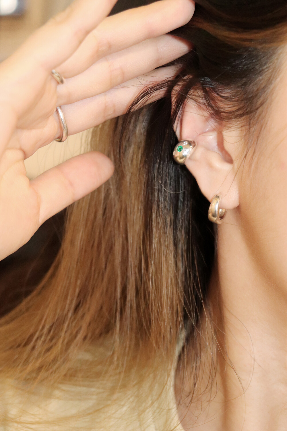 cubic ball earcuff (emerald)